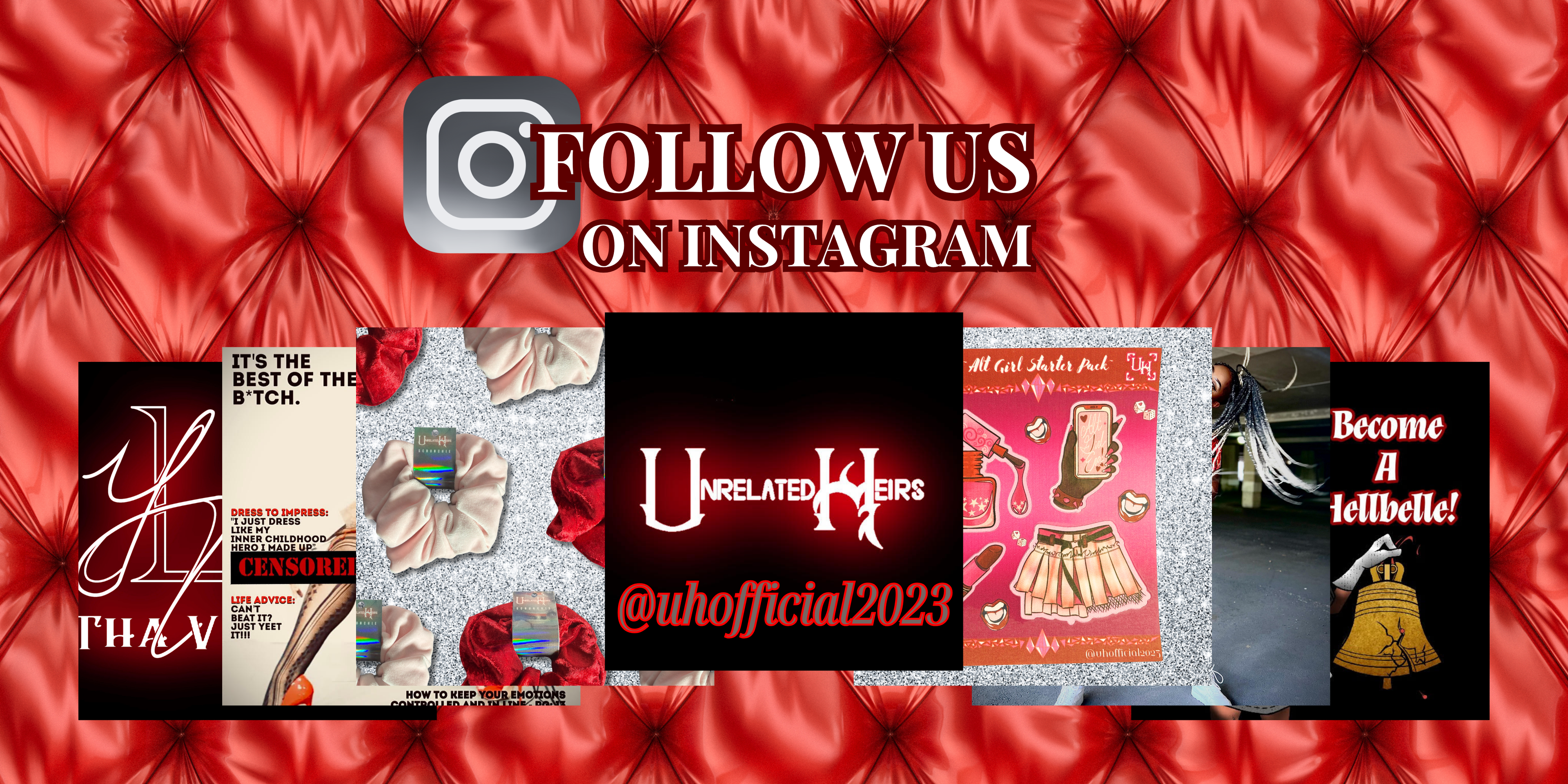 "Liberty The First! .. Unrelated" The overall idea and culmination of the brand, Unrelated Heirs was originated in early 2023. Created with the intent to market to a audience like none other. That being all the ghouls and fools on the #Alt side. Having all the designs and concepts originated by Tha Villainess herself. We want to exceed and bring accessible art, accessories, and more to all!!!